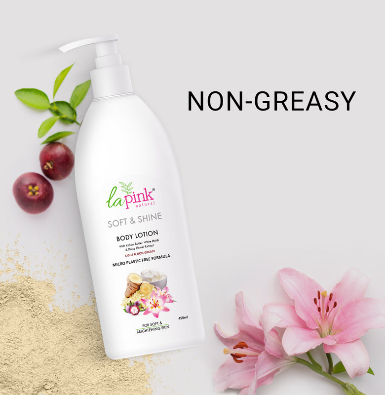 La Pink body lotions are crafted with fast-absorbing natural emollients like kokum butter and aloe vera that deeply moisturize the skin without leaving a greasy or sticky after-feel—ideal for everyday use, even in warm or humid weather.