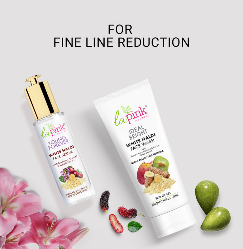 As we age, fine lines and wrinkles become more visible on our face. It begins in early 30s with smile lines and gradually shapes into fine lines on forehead, around the mouth and neck. To combat the situations like fine lines & wrinkles, La Pink, India’s First Beauty Brand with 100% Microplastic Free Formulations have come up with multiple solutions for fine line reduction, including anti wrinkle serum, best aging cream and anti wrinkle face wash and face mask. Our skin care products for wrinkles and fine lines target signs of aging and help replenish the skin’s glow.