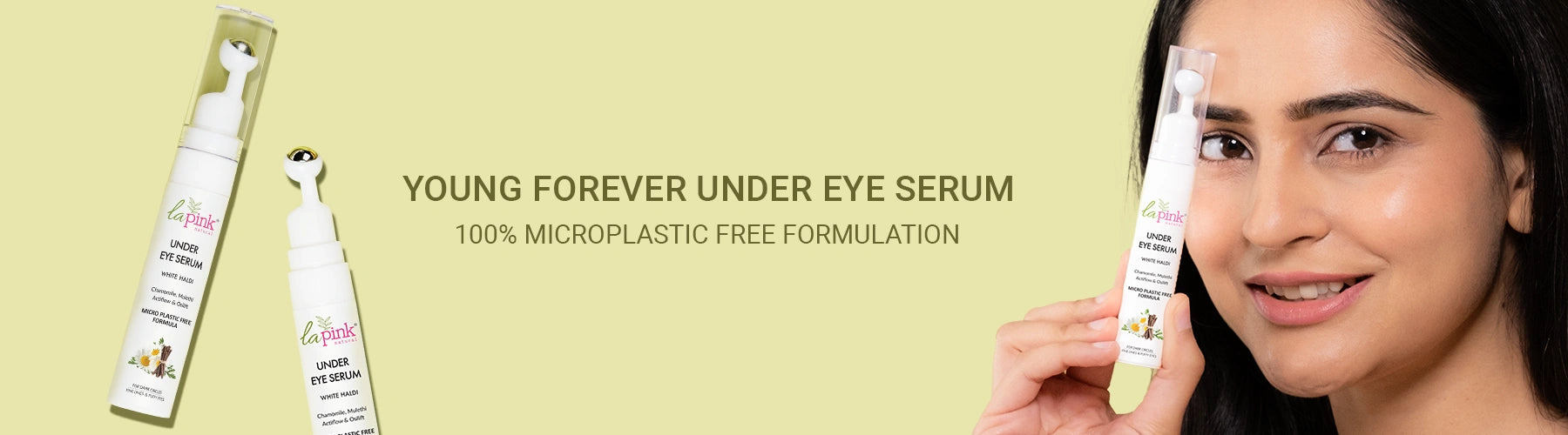 For best results, apply under-eye cream twice dailyâ”once in the morning and once before bedtime. Gently pat the cream with your ring finger to avoid tugging the skin. You can try La Pink Under Eye Cream with White Haldi, which is made of purely natural ingredients like White Haldi, Niacinamide (Vit-B3), Chamomile, etc., and is 100% Microplastic-Free. Thus, it ensures 100% skin-friendliness for all skin types without producing side effects.