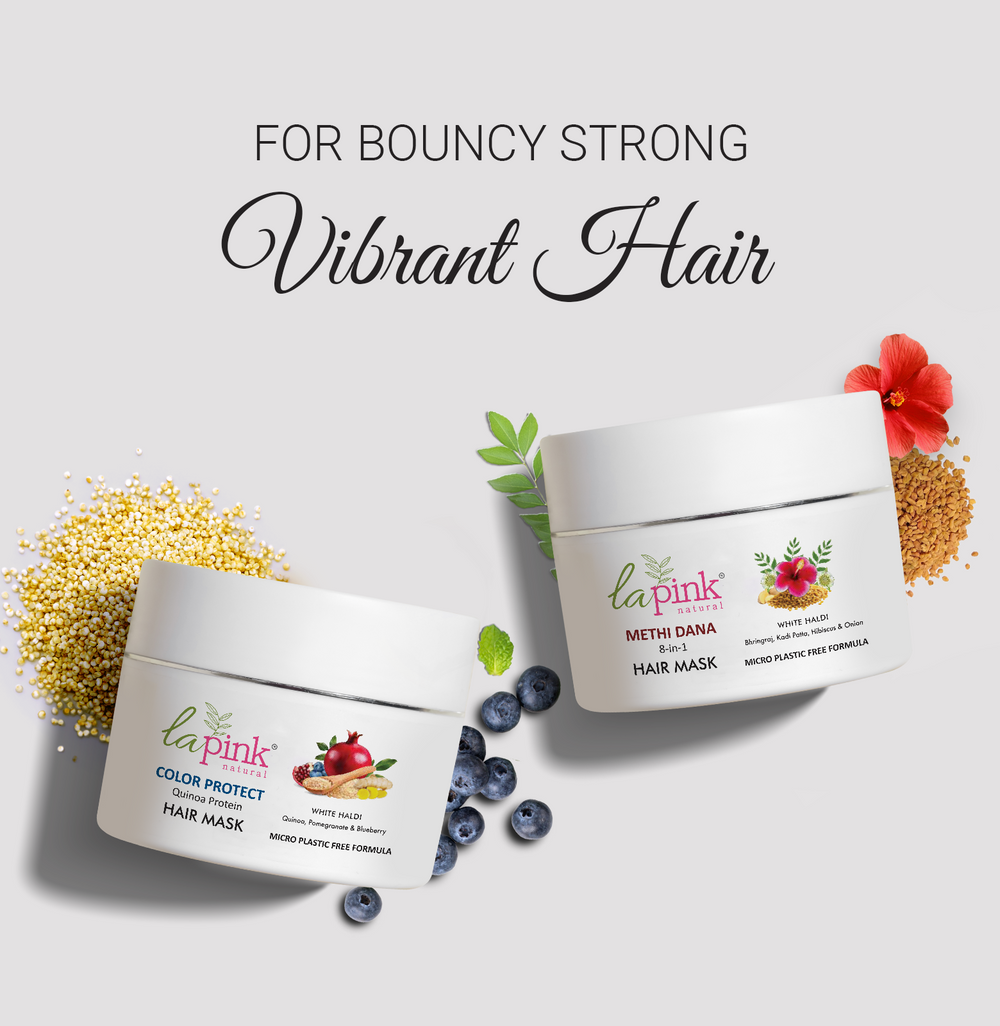Opt for hair masks containing natural, nourishing ingredients that address your specific hair concerns. Look for ingredients like methi dana, quinoa, pomegranate, and blueberry, known for their beneficial properties.