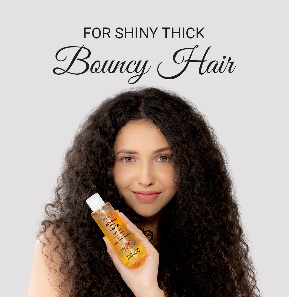 - La Pink Methi Dana 8-in-1 Hair Oil: Ideal for controlling hair fall and adding volume, while reducing dandruff and maintaining scalp health making it the best oil for hair loss and regrowth and the best hair growth conditioner for women and men.