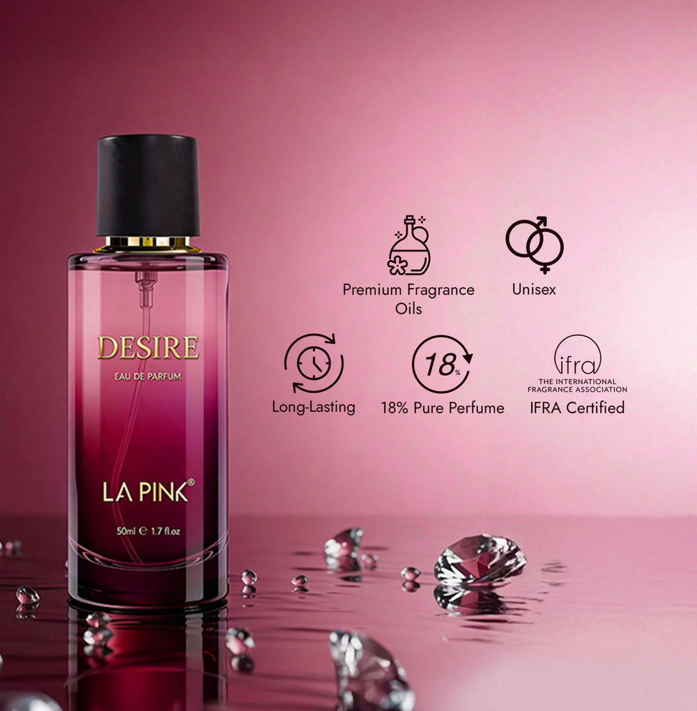 - Unisex & Versatile Appeal: Desire is designed to suit a wide range of preferences, making it the best unisex perfume. Its balanced sweetness, floral softness, and musky depth adapt beautifully across different ages and styles. Whether worn by men or women, the fragrance enhances individuality rather than conforming to stereotypes. Its versatility also makes it suitable for multiple occasions, moods, and seasons, allowing it to become a reliable everyday signature scent.