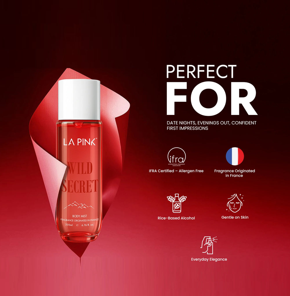Premium Craftmanship: La Pink Wild Secret Body Mist is made with premium formulative craftsmanship purely based on natural ingredients, imported from various corners of the world. Besides this, the formulation is completely devoid of harsh chemicals and skin-irritant alcohols.